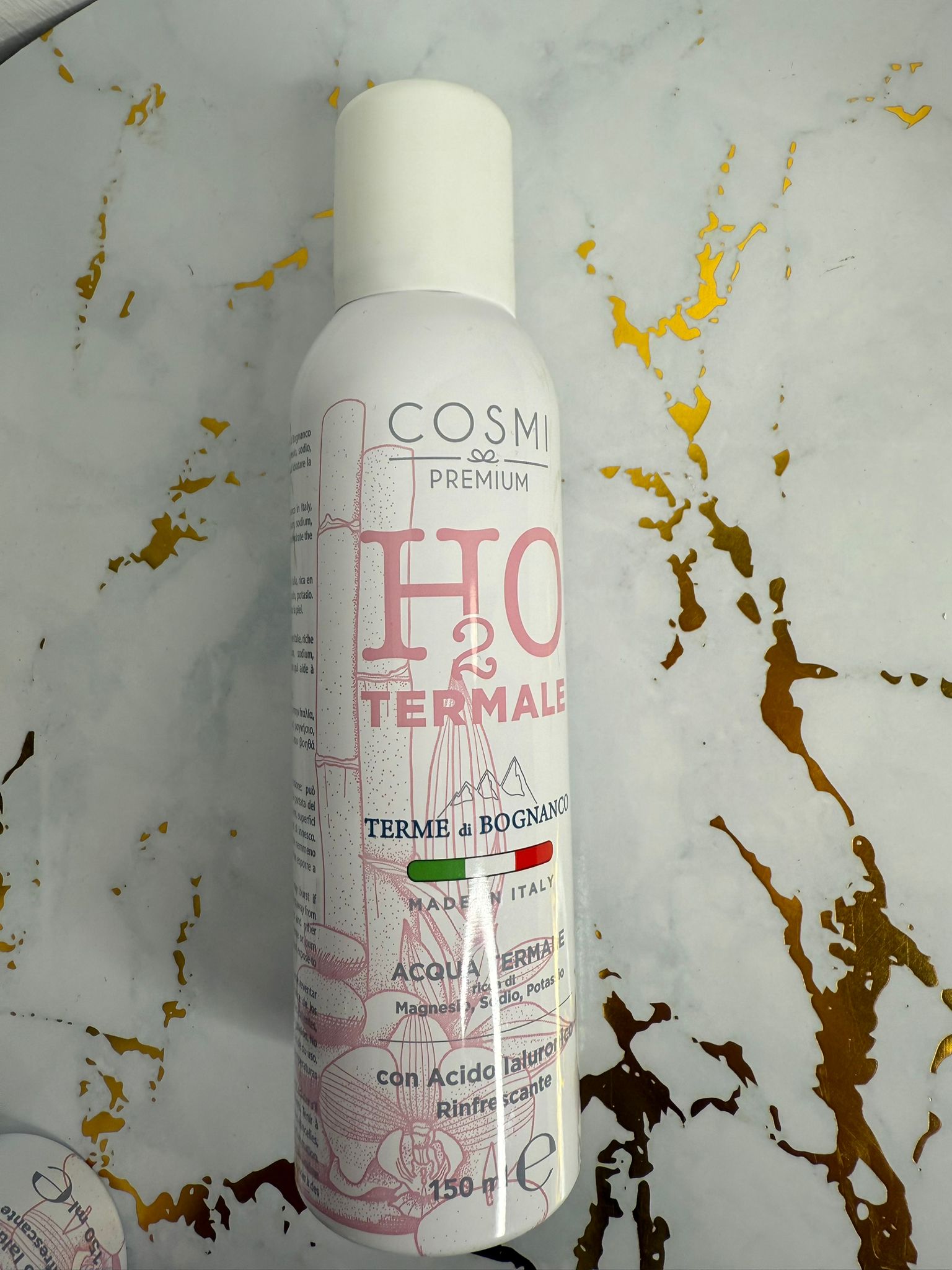 El producto de la imagen es un agua termal de la marca Cosmi Premium, que sirve para refrescar, calmar e hidratar la piel.