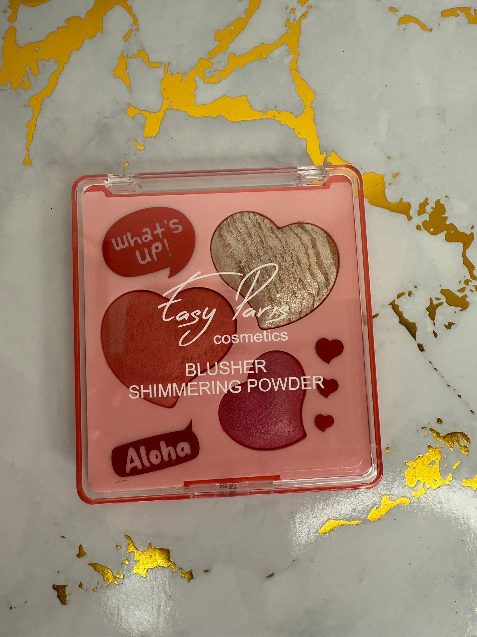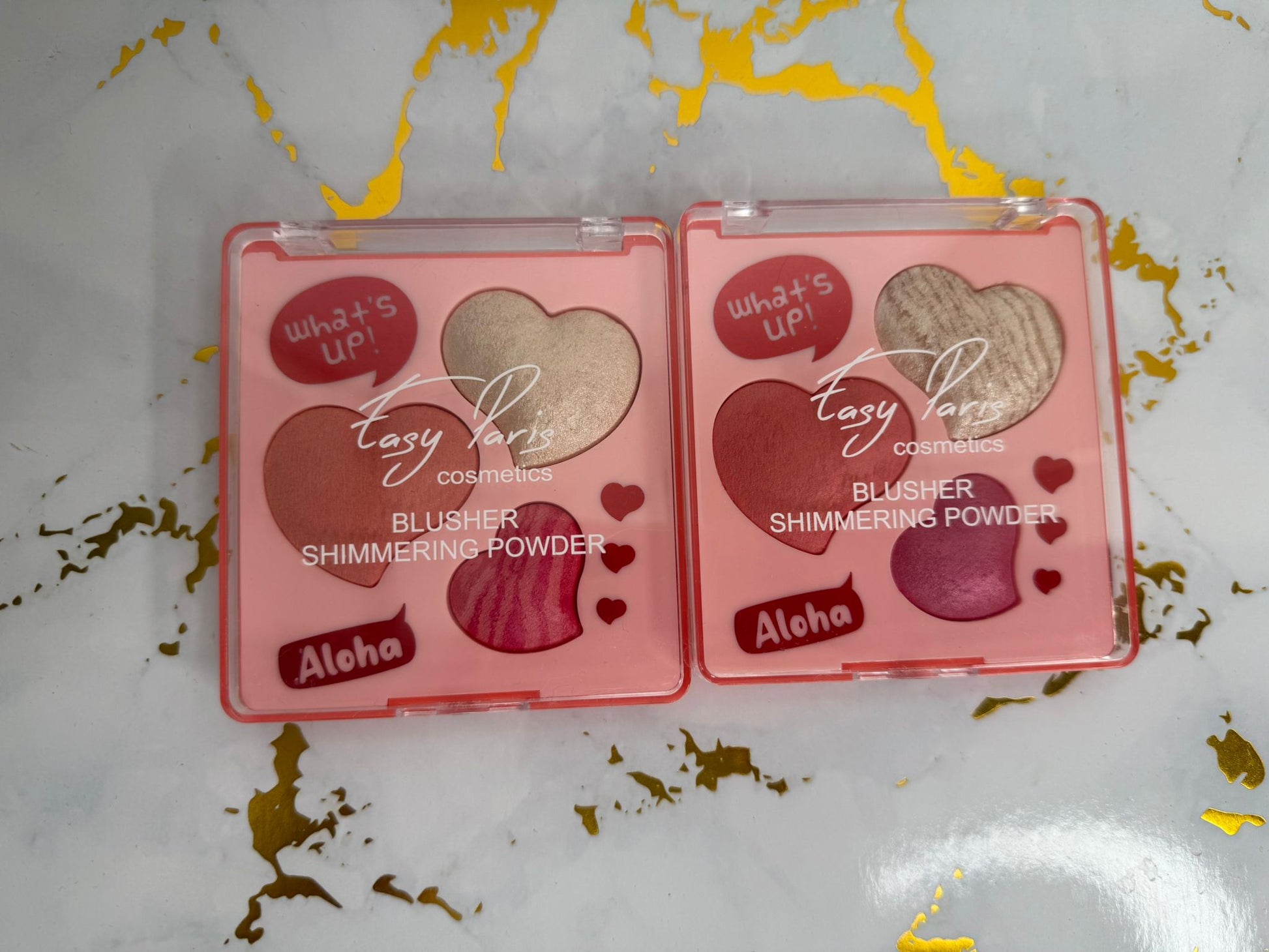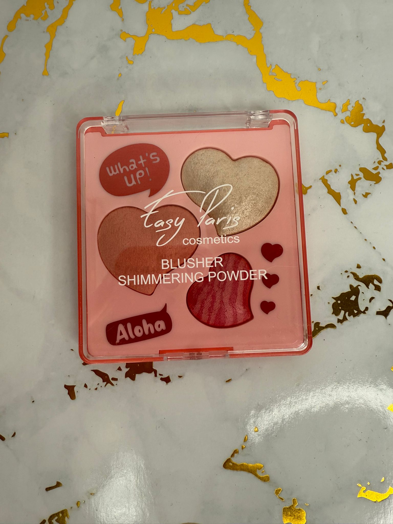 Formato: Se presenta en un estuche compacto con varios tonos en forma de corazón, que incluyen un tono de colorete y un tono iluminador brillante.