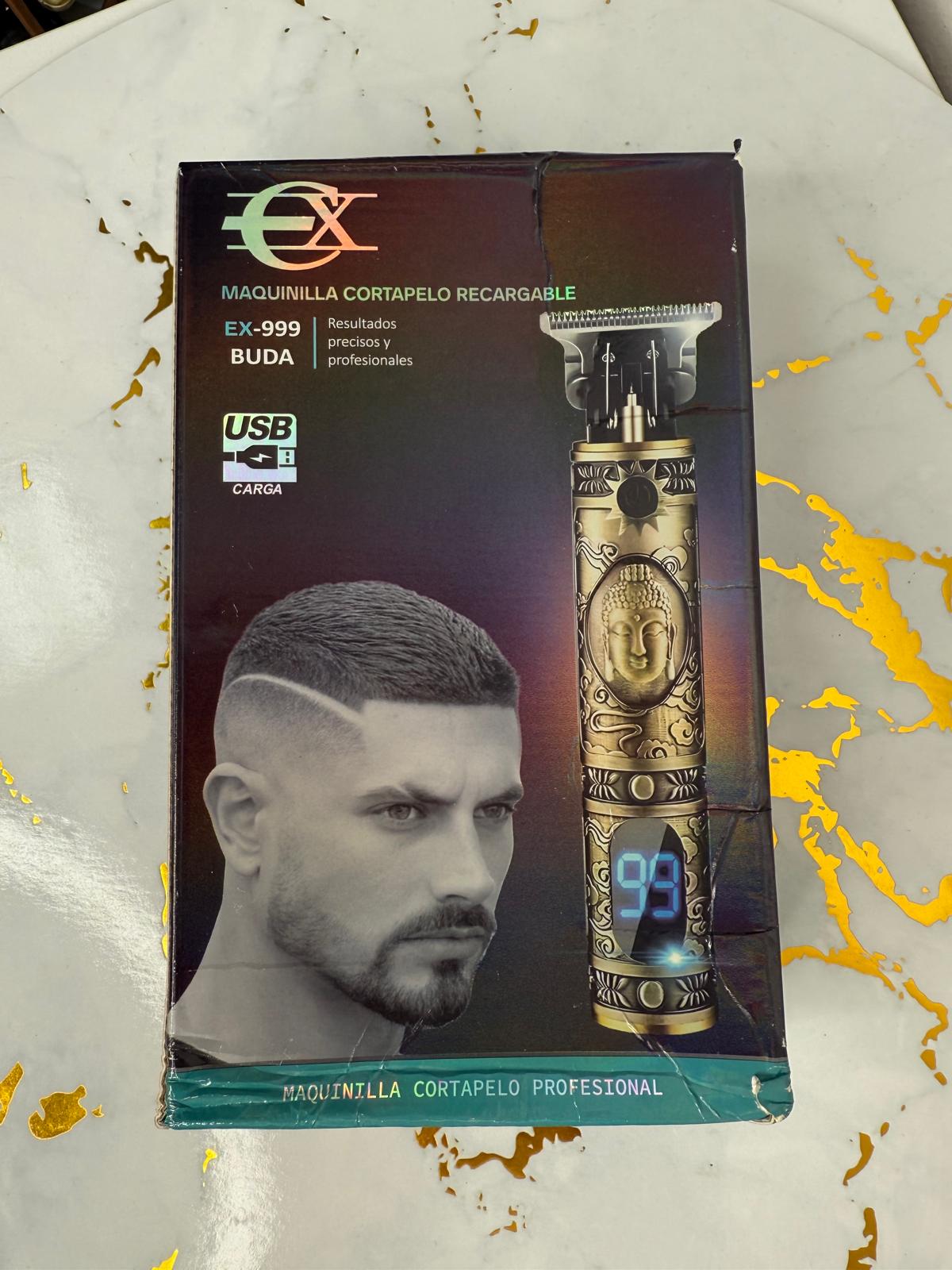 La maquinilla cortapelo recargable con diseño de Buda, como la que se muestra en la imagen, sirve para cortar y perfilar el cabello, la barba y el vello corporal de manera precisa y profesional.