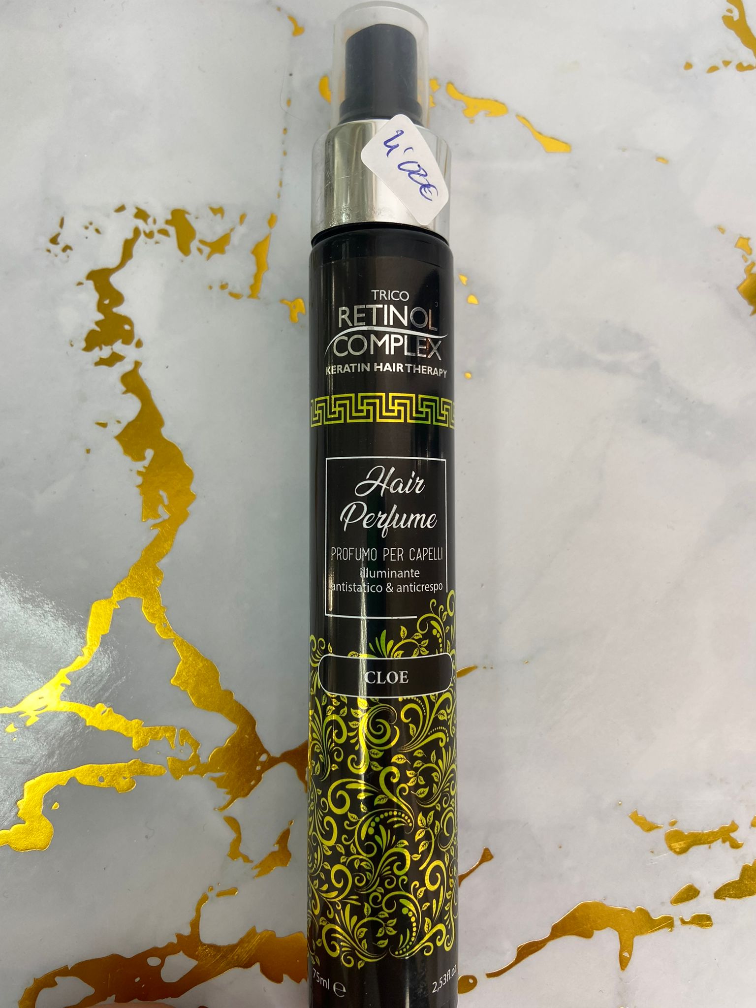 El producto de la imagen es un Perfume para Cabello Retinol Complex Cloe de la línea TRICO RETINOL COMPLEX KERATIN HAIR THERAPY.