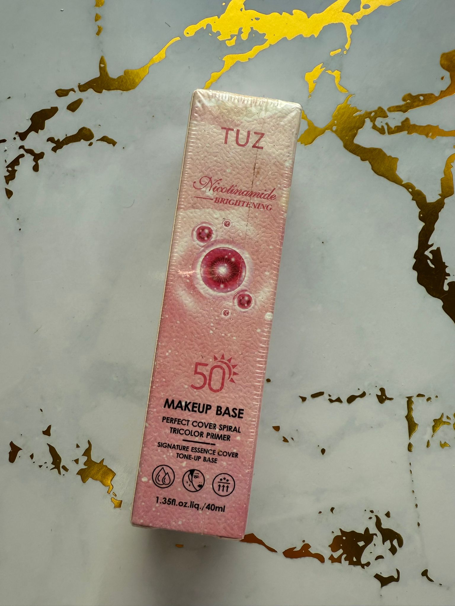 El producto en la imagen es una Base de Maquillaje TUZ Nicotinamide Brightening Perfect Cover Spiral Tricolor Primer.
